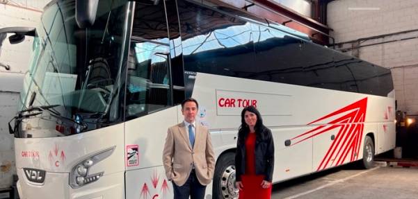 El nuevo vehículo VDL Futura de la flota de Cartour, está configurado con capacidad para 55 pasajeros a los que se suman los puestos del conductor y del guía.