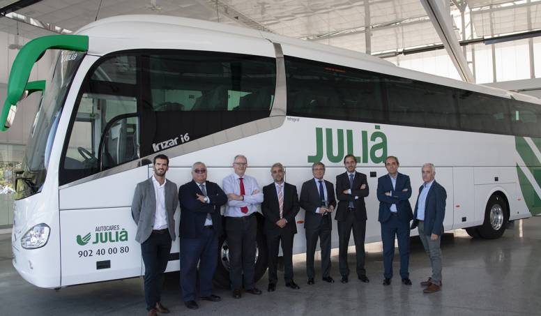 Irizar ha hecho entrega a la empresa Autocares Julia de la unidad número 5.000 de su modelo de autocar i6, durante un acto celebrado en sus instalaciones de Ormáiztegui (Guipúzcoa). El vehículo, de 13 metros de longitud en su versión elevada, está equipado con un motor Daf de 450 CV de potencia y 59 butacas con tomas USB.