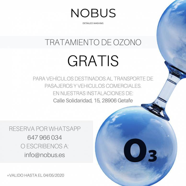 Desde nuestra empresa colaboradora GRUPO BMS nos hacen llegar la siguiente promoción por la cual ponen a disposición de las empresas de AETRAM una prueba gratuita del sistema de tratamiento de ozono NOBUS, por el cual la máquina de ozono desinfecta e higieniza el ambiente del interior de los autocares.