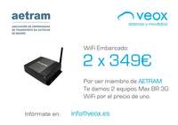 La promoción consiste en ofrecer WiFi embarcado 2x1 por ser miembro de AETRAM, con 2 equipos Max BR 3G WiFi por el precio de 1 -2 x 349 €-, promoción válida para el primer equipo, una vez por cliente y no acumulable. La plataforma incontrol y la configuración tienen un coste de 75 € + iva (incluye pago inicial de la plataforma). El WiFi Embarcado, con el mejor equipo del mercado, es una robusta pasarela móvil que ofrece un punto de acceso wifi a través del que se obtiene servicio de puntos de acceso inalámbricos a internet a los pasajeros mediante el uso de las redes móviles. El equipo es auto instalable, en caso de necesitar instalación consultar precio. Más información en info@veox.es y en el enlace http://www.veox.es/contacto/ |