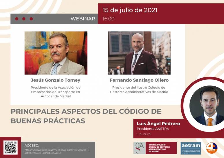 AETRAM y ANETRA organizan para el próximo 15 de julio una Webinar, en colaboración con el Ilustre Colegio de Gestores Administrativos de Madrid a través de su Presidente, D. Fernando Santiago Ollero y que contará también con las ponencias de apertura y cierre de la Jornada de los Presidentes de ambas asociaciones, D. Jesus Gonzalo (AETRAM) y D. Luis Ángel Pedrero (ANETRA).