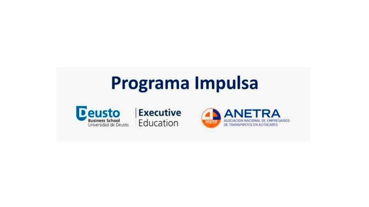 Desde nuestra Asociación nacional ANETRA nos informan de la reciente ampliación del plazo de inscripción al “PROGRAMA IMPULSA. ESPECIALISTA EN DIRECCIÓN Y GESTIÓN DE EMPRESAS DE TRANSPORTE”. En relación a este interesante programa de formación, el próximo 27 de septiembre (martes) a las 11 h. se ha programado por parte de ANETRA en colaboración con la Universidad Deusto una WEBINAR (Conferencia Online - ZOOM) con el título “6 VIAS DE CRECIMIENTO EN SERVICIOS DISCRECIONALES DE MOVILIDAD EN CARRETERA” impartida por D. Juan Manuel Poyatos, Director del Programa Impulsa, donde se ofrecerá a los empresarios participantes “las claves para llevar a tu empresa al siguiente nivel. No dejes pasar esta oportunidad única”. INSCRIPCIONES AQUÍ.