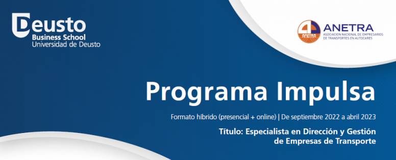 Nuestra Asociación nacional ANETRA, consciente de los retos futuros que plantea el transporte por carretera, ha lanzado el programa de formación IMPULSA, a través de Deusto Business School - Universidad de Deusto.