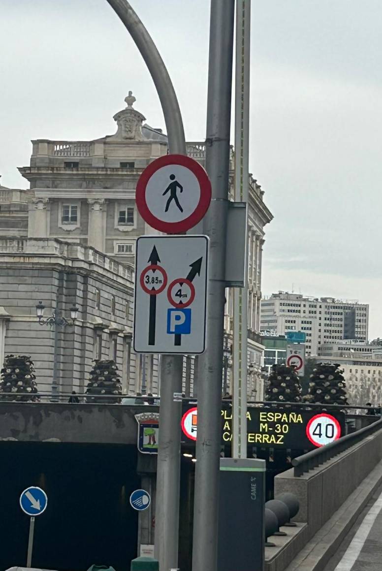 El Ayuntamiento de Madrid señalizó unilateralmente el pasado verano los pasos subterráneos de Plaza España (entrada Cuesta San Vicente) y el situado en la calle Bailen (acceso al Parking para autobuses de la Plaza de Oriente) con un GÁLIBO de máximo 3,85 m de altura. Ahora, tras las gestiones y reuniones efectuadas desde el Comité Madrileño de Transportes por Carretera, en el que AETRAM se encuentra integrado con otras Asociaciones del sector, desde la Direccion General de Conservación de Vías Publicas del Ayuntamiento de Madrid nos informan de las siguientes modificaciones, que afectan principalmente al túnel de la calle Bailen: