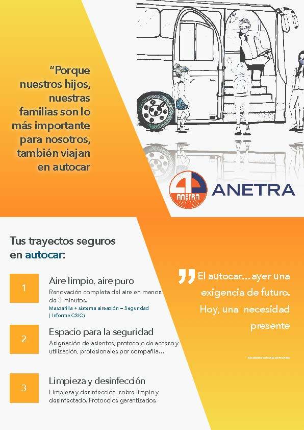 Desde nuestra Asociación nacional ANETRA nos hacen llegar su video final dentro de la campaña de comunicación lanzada al conjunto de la sociedad en defensa de la movilidad colectiva en transporte en autocar como entorno seguro sin riesgos de contagio por sus usuarios en todo tipo de traslados.
