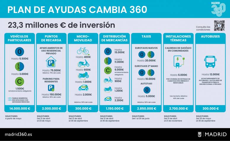 Con una dotación inicial de 9,8 millones de euros -ampliables a 23,3 millones-, estas ayudas consolidan una estrategia que, desde 2019, ha destinado 117,3 millones a renovar el parque móvil y mejorar instalaciones térmicas. El 76% de los fondos se ha orientado a la compra de vehículos particulares menos contaminantes (44,15%) y a la modernización de sistemas de climatización (31,88%), según datos municipales. El gobierno local destaca que estas subvenciones han sido claves para cumplir tres años seguidos con los límites de contaminación que exige la UE. En 2025, además, se reservan 200.000 euros (con posibilidad de ampliación a 300.000) para retirar autobuses y autocares antiguos del transporte discrecional o privado complementario. Los beneficiarios deberán acreditar el pago del Impuesto de Vehículos en Madrid desde 2022.