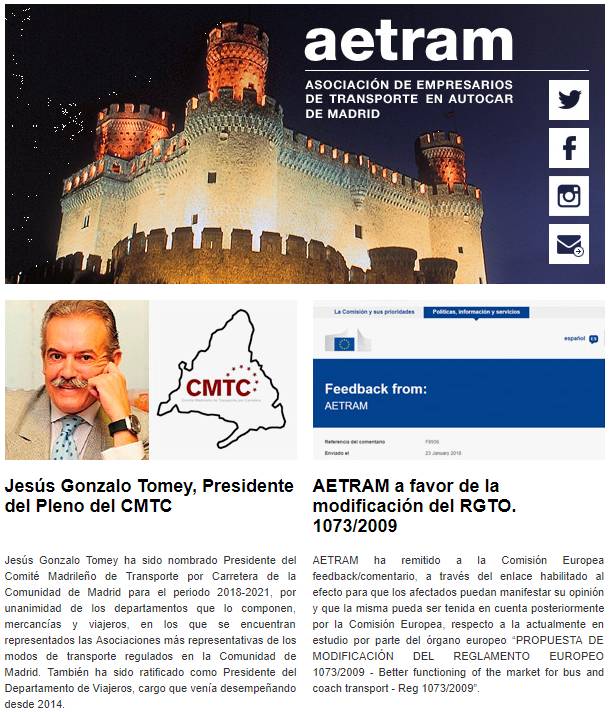 El Newsletter posee un diseño actual, moderno y renovado, conteniendo noticias de interés para el Sector, con la actualidad de la Asociación y actividades desarrolladas, siendo una lectura de gran interés para todos los profesionales relacionados y con una alta visibilidad en un formato muy bien valorado por los empresarios, el cual se envía en formato digital a los socios de AETRAM, profesionales, empresas y otras entidades relacionadas con el Sector.