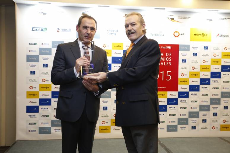 Jesús Gonzalo Tomey, Presidente de la Asociación de Empresarios de Transporte en Autocar de Madrid - AETRAM, fue el encargado de entregar uno de los premios Vehículos Industriales del Año 2015 en España, concretamente la categoría de Microbús.