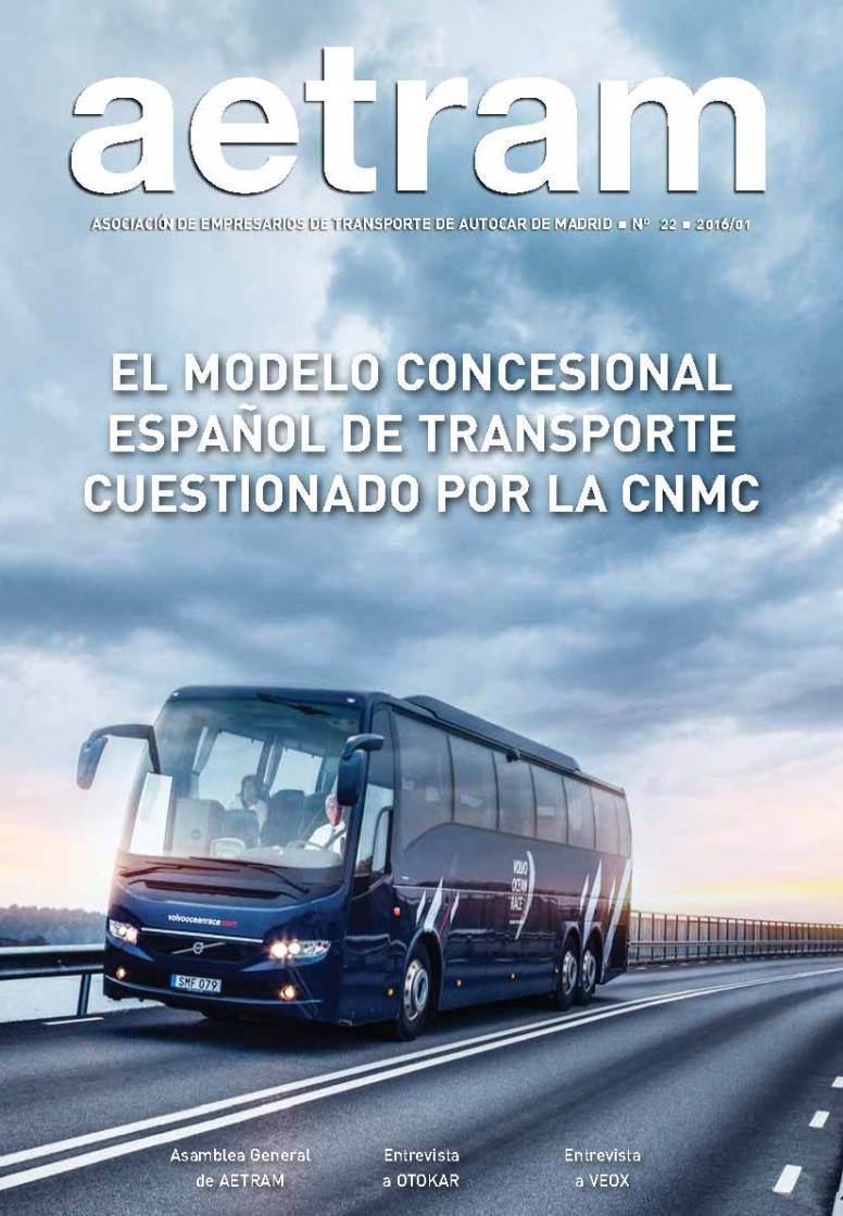 Ya se ha publicado el nuevo numero de la Revista de AETRAM, en concreto la edicion numero 22, con interesantes noticias relacionadas con el sector del transporte de viajeros por carretera de los servicios discrecionales, regulares temporales y regulares de uso especial de la Comunidad de Madrid y de AETRAM.